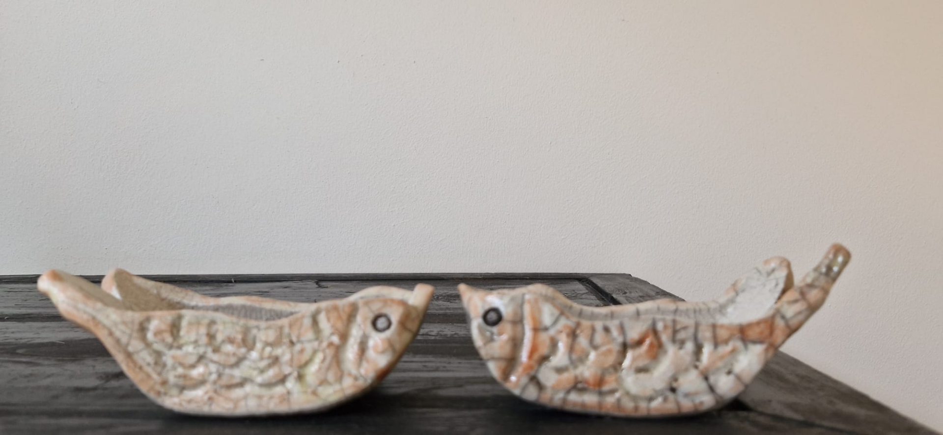 2 schaaltjes (poezendrink- en -etensbak). 13x6 cm en 15x6 cm