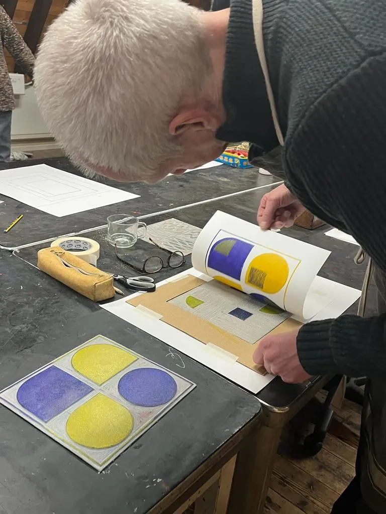 Het maken van linosnedes intrigeert me. Dat komt omdat het maken ervan een combinatie is van creativiteit en technische vaardigheid. Het materiaal en de inkt legt beperkingen op aan de afbeelding, en het snijden van het linoleum vereist geduld en precisie. Het is heerlijk om daar mee bezig te zijn en alleen daar aan te denken. Voor mij echt ontspannend, al het andere valt even weg.